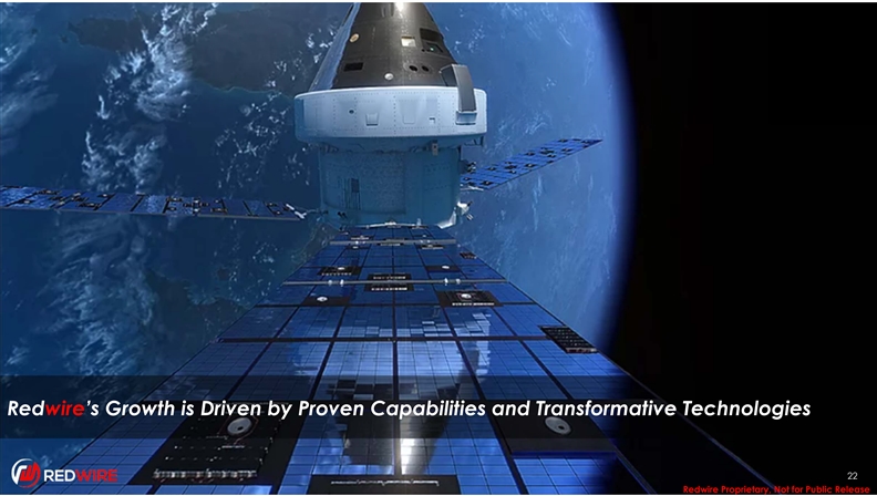 Numerous Avenues to Potentially Accelerate and De-Risk Redwire’s Growth ($ in Millions) Organic Projections Accelerated 72% Organic Revenue CAGR (2021E-2025E) R&D / CapEx Additional Strategic M&A Focused Growth Strategy and Breakthrough Technologies Five Strategic Focus Areas Where Redwire is Transforming Space Critical Supplier On Imminent, Transaction Proceeds Enable Large-Scale Space Programs $1,413 Additional Potential Upside Due to Numerous Planned Program- and 3 Accelerated R&D / CapEx and Constellation-Level Opportunities Additional Strategic M&A Strong Growth in the Base Business with High Visibility 2 1.3x Backlog / Revenue with $100s of Millions in Options & Follow-Ons 1 $163 2021E Revenue 2025E Revenue 21 Jefferies LLC / October 2020 Redwire Proprietary, Not for Public ReleaseNumerous Avenues to Potentially Accelerate and De-Risk Redwire’s Growth ($ in Millions) Organic Projections Accelerated 72% Organic Revenue CAGR (2021E-2025E) R&D / CapEx Additional Strategic M&A Focused Growth Strategy and Breakthrough Technologies Five Strategic Focus Areas Where Redwire is Transforming Space Critical Supplier On Imminent, Transaction Proceeds Enable Large-Scale Space Programs $1,413 Additional Potential Upside Due to Numerous Planned Program- and 3 Accelerated R&D / CapEx and Constellation-Level Opportunities Additional Strategic M&A Strong Growth in the Base Business with High Visibility 2 1.3x Backlog / Revenue with $100s of Millions in Options & Follow-Ons 1 $163 2021E Revenue 2025E Revenue 21 Jefferies LLC / October 2020 Redwire Proprietary, Not for Public Release