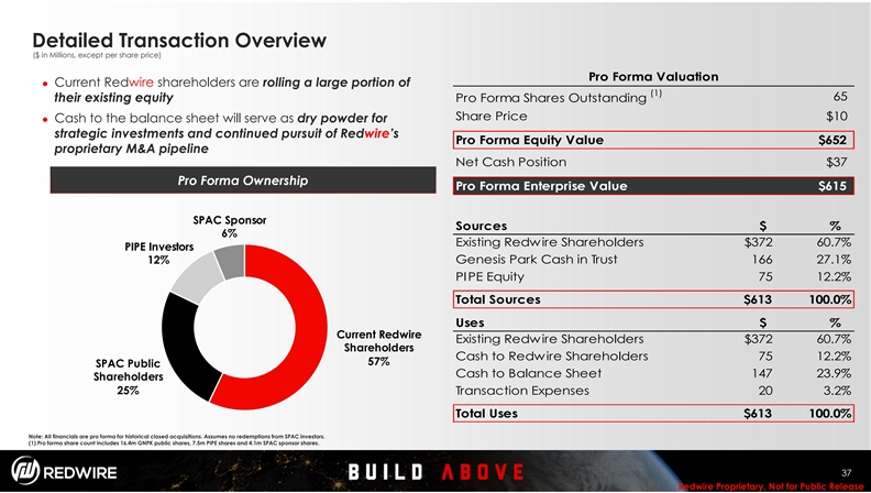 Transaction Details 36 Jefferies LLC / October 2020 Redwire Proprietary, Not for Public Release Redwire Proprietary, Not for Public ReleaseTransaction Details 36 Jefferies LLC / October 2020 Redwire Proprietary, Not for Public Release Redwire Proprietary, Not for Public Release