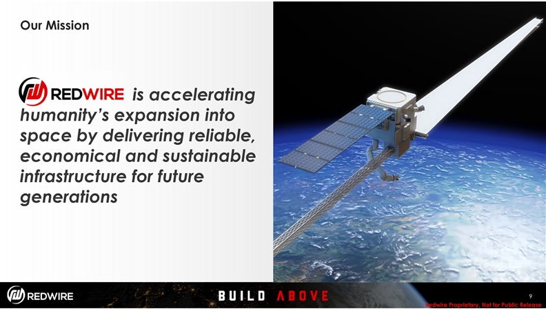 Our Mission is accelerating humanity’s expansion into space by delivering reliable, economical and sustainable infrastructure for future generations 9 Jefferies LLC / October 2020 Redwire Proprietary, Not for Public ReleaseOur Mission is accelerating humanity’s expansion into space by delivering reliable, economical and sustainable infrastructure for future generations 9 Jefferies LLC / October 2020 Redwire Proprietary, Not for Public Release