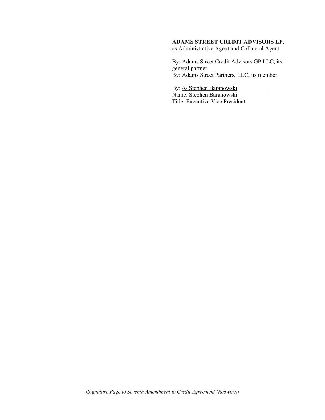 [Signature Page to Seventh Amendment to Credit Agreement (Redwire)] ADAMS STREET CREDIT ADVISORS LP, as Administrative Agent and Collateral Agent By: Adams Street Credit Advisors GP LLC, its general partner By: Adams Street Partners, LLC, its member By: /s/ Stephen Baranowski__________ Name: Stephen Baranowski Title: Executive Vice President