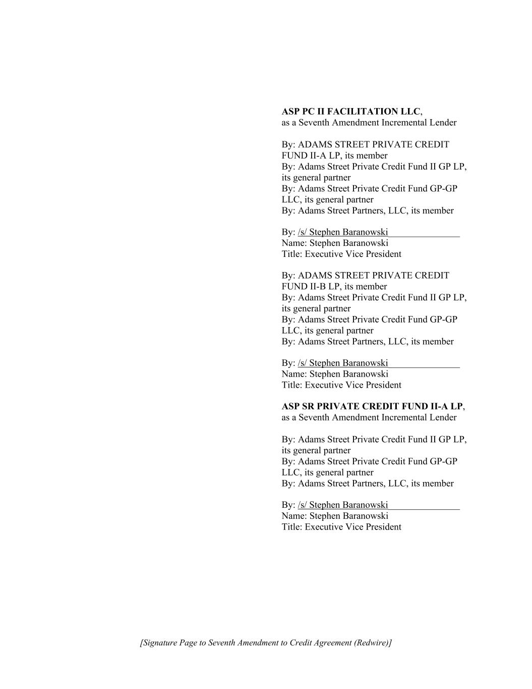 [Signature Page to Seventh Amendment to Credit Agreement (Redwire)] ASP PC II FACILITATION LLC, as a Seventh Amendment Incremental Lender By: ADAMS STREET PRIVATE CREDIT FUND II-A LP, its member By: Adams Street Private Credit Fund II GP LP, its general partner By: Adams Street Private Credit Fund GP-GP LLC, its general partner By: Adams Street Partners, LLC, its member By: /s/ Stephen Baranowski_______________ Name: Stephen Baranowski Title: Executive Vice President By: ADAMS STREET PRIVATE CREDIT FUND II-B LP, its member By: Adams Street Private Credit Fund II GP LP, its general partner By: Adams Street Private Credit Fund GP-GP LLC, its general partner By: Adams Street Partners, LLC, its member By: /s/ Stephen Baranowski_______________ Name: Stephen Baranowski Title: Executive Vice President ASP SR PRIVATE CREDIT FUND II-A LP, as a Seventh Amendment Incremental Lender By: Adams Street Private Credit Fund II GP LP, its general partner By: Adams Street Private Credit Fund GP-GP LLC, its general partner By: Adams Street Partners, LLC, its member By: /s/ Stephen Baranowski_______________ Name: Stephen Baranowski Title: Executive Vice President